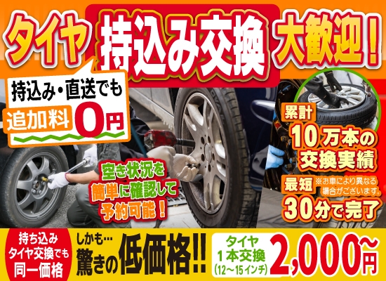 当店では、地域最安値帯の価格でタイヤ交換を実施しています。